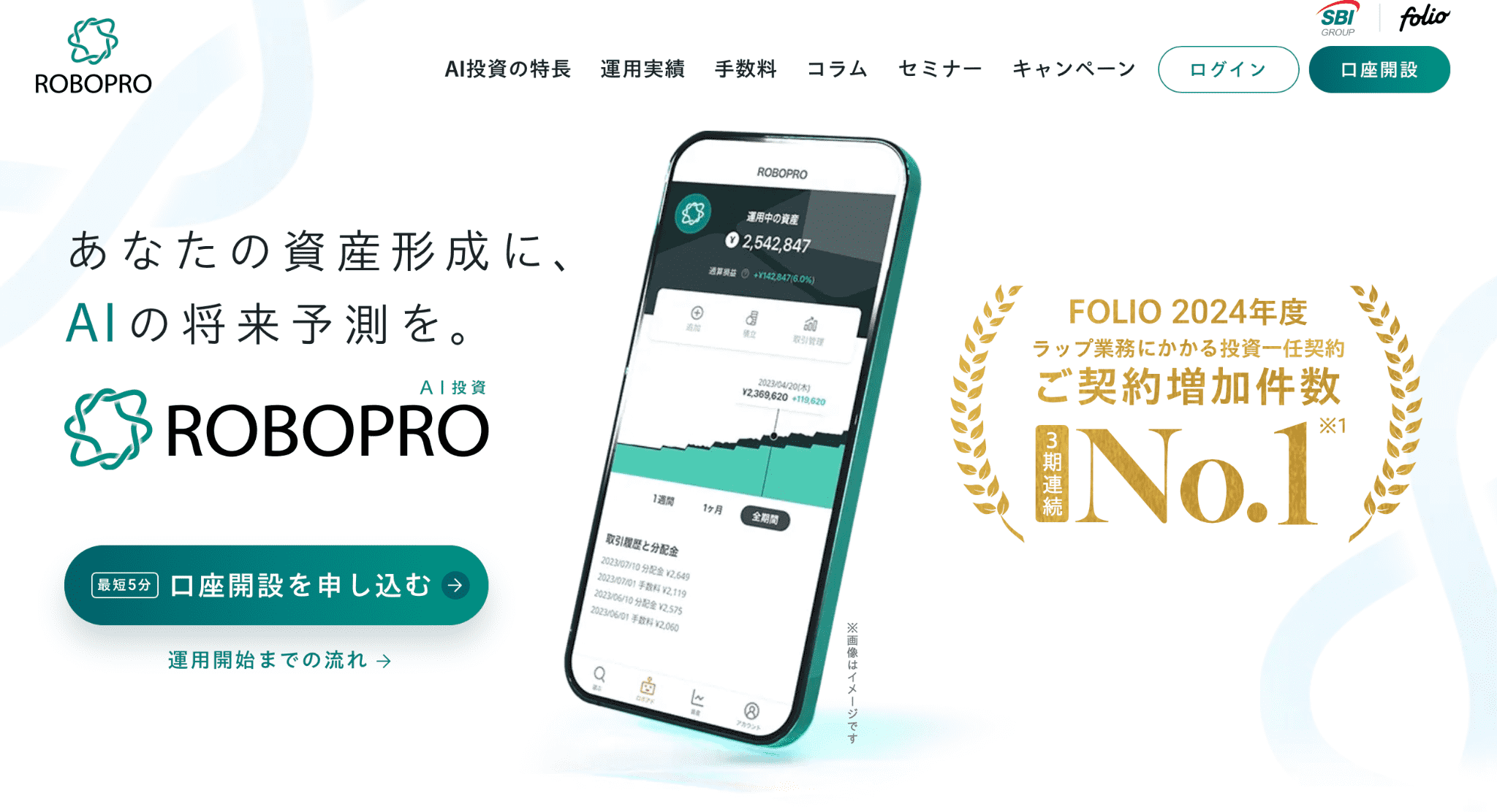 ウェルスナビは2016年1月からサービスを提供している投資一任型のAI投資サービスです。
