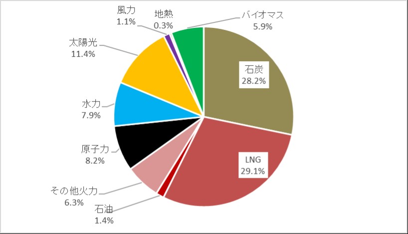 日本の全発電電力量に占めるバイオマス発電の割合は2024年時点で5.9%です。