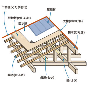 一般的な屋根の構造は以下のようになっています。