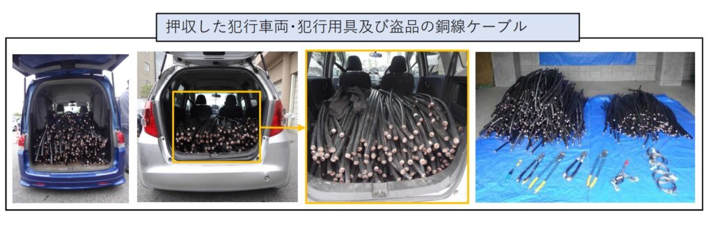 カンボジア人7名が逮捕され、76件・約2億5,400万円の被害が確認されました。盗品は県内の金属くず業者に買い取られており、同一業者が別事件の銅線も買い取っていたことが判明しています。