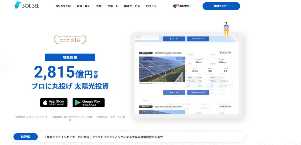 「SOLSEL(ソルセル)」は、土地選定から設備導入、施工、アフター管理まで一貫してサポートしてくれる安心した会社です。