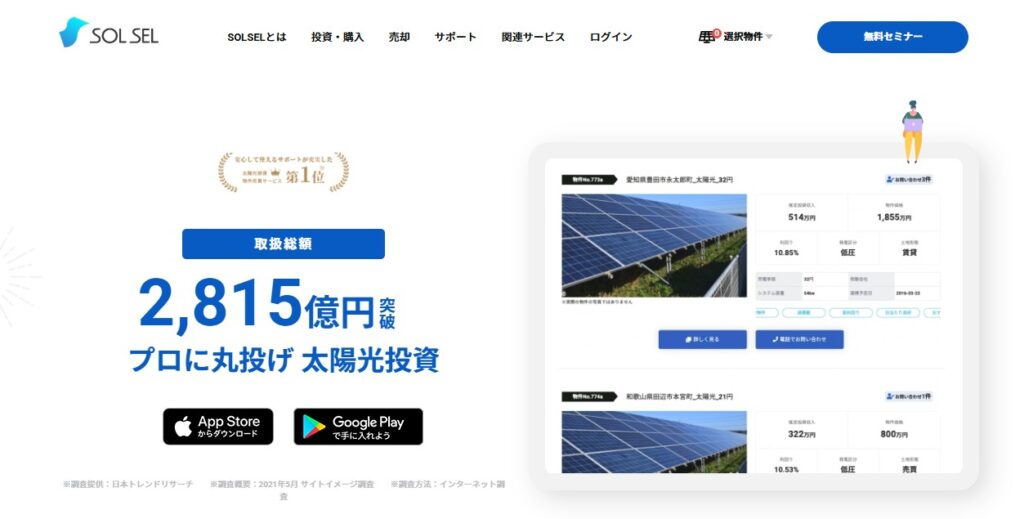 「SOLSEL(ソルセル)」は、土地選定から設備導入、施工、アフター管理まで一貫してサポートしてくれる安心した会社です。